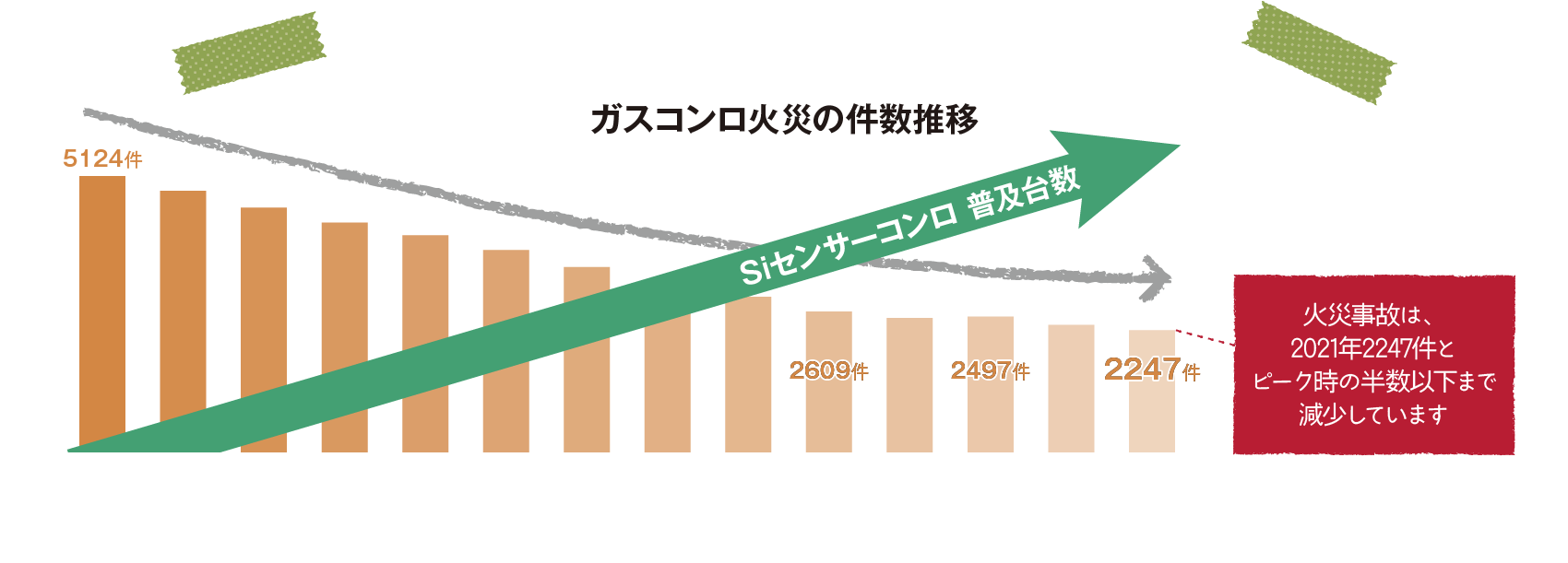 ガスコンロを原因とする火災事故の抑制に貢献しています。